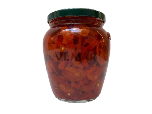 INGREDIENTI: Peperoni (56%), olio di semi di girasole (33%), aceto di vino, sale.